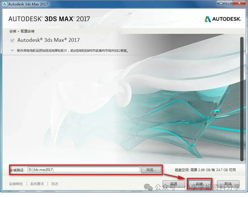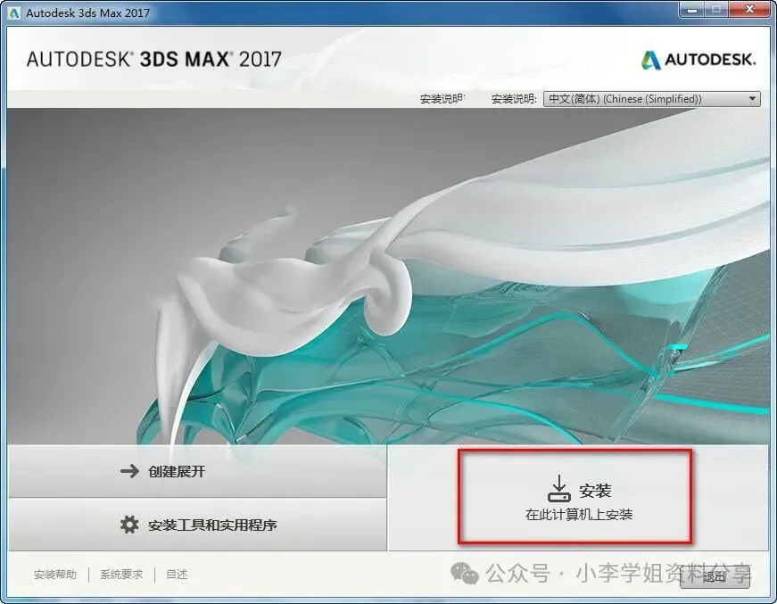 2.双击运行该程序"Autodesk_3ds_Max_2017_EFGJKPS_Win_64bit_001_002.sfx"