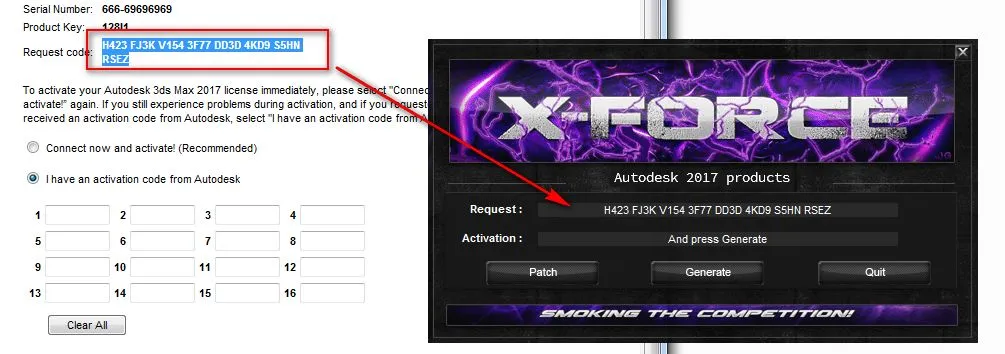 温馨提示:若打开没有注册机,说明被电脑杀毒软件隔离了,关闭杀毒软件重新解压即可。 18.将申请号复制到Request输入框中 注:复制和粘贴只能用快捷键"Ctrl+C"和”Ctrl+V”
