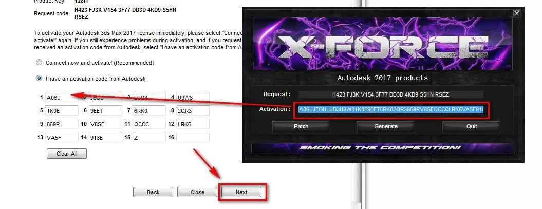 20.将生成的激活码复制到激活码输入框,点击“Next” 注:复制和粘贴只能用快捷键"Ctrl+C"和”Ctrl+V”