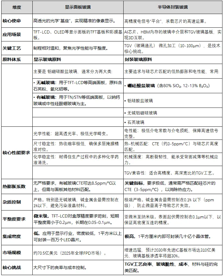 简单来说,显示面板玻璃是为“光”和“视觉”服务的,它对透光率和面积的要求极高;而半导体封装玻璃则是为“电”和“算力”服务的,它对材料纯度、电性能和加工精度的要求达到了极致。