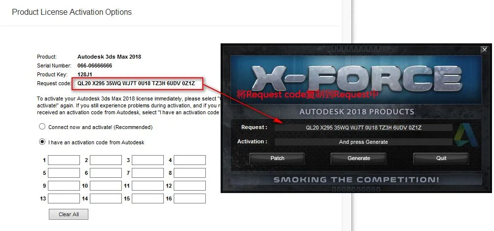 温馨提示:若打开没有注册机,说明被电脑杀毒软件隔离了,关闭杀毒软件重新解压即可。 17.将申请号复制到Request输入框中 注:复制和粘贴只能用快捷键"Ctrl+C"和”Ctrl+V”