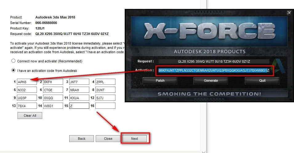 19.将生成的激活码复制到激活码输入框,点击“Next” 注:复制和粘贴只能用快捷键"Ctrl+C"和”Ctrl+V”