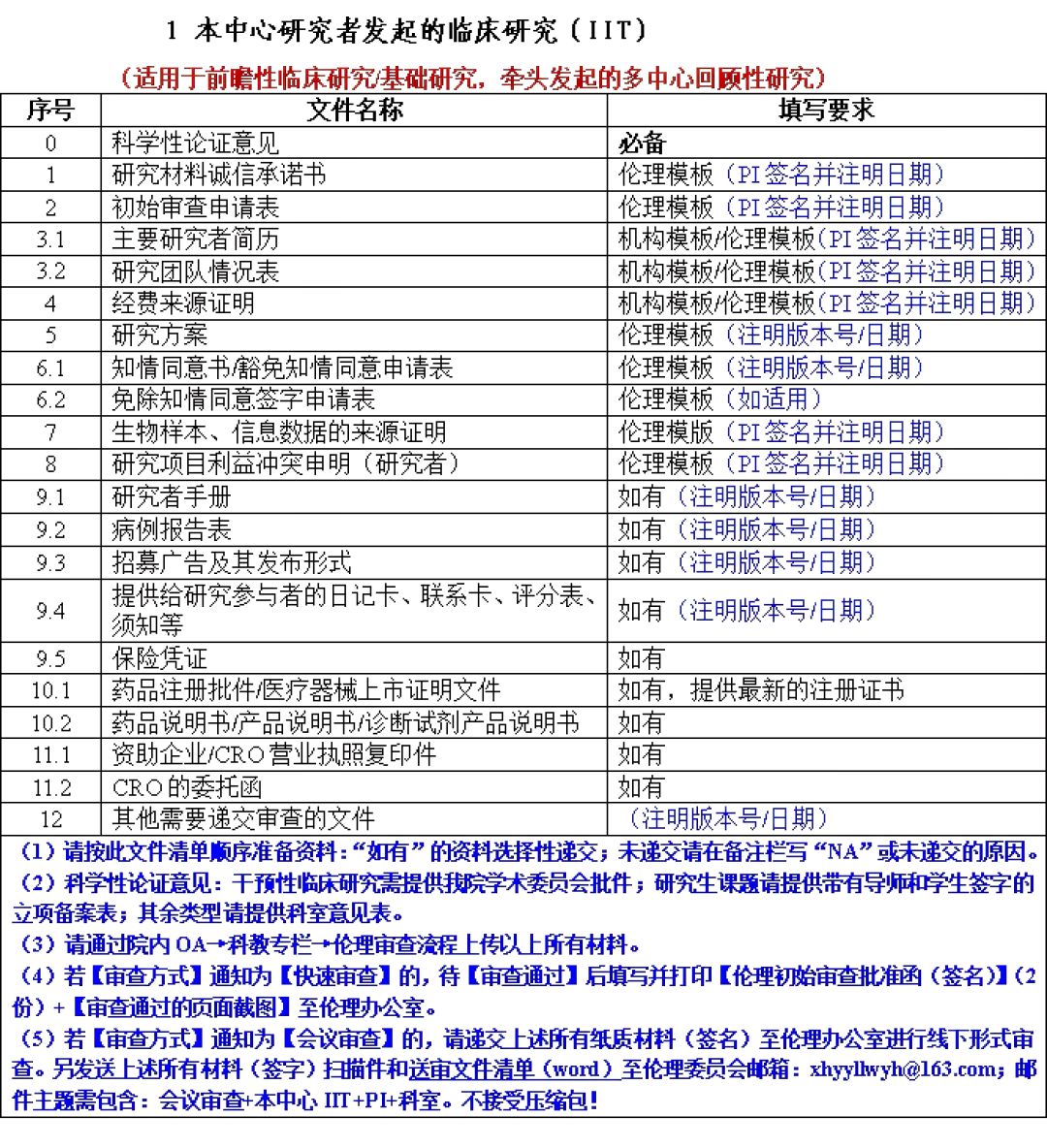 研究者发起的临床研究(IIT)、申办者发起的非注册性临床研究及免除伦理审查的项目,均需首先在临床研究管理部门(本院的药物临床试验机构办公室)完成立项手续。立项通过后,方可进入伦理审查环节。