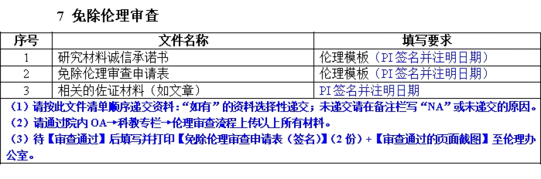 注意:免除伦理审查不等于免除备案,研究者仍需向伦理委员会提交免除审查申请表,获得确认后方可实施。