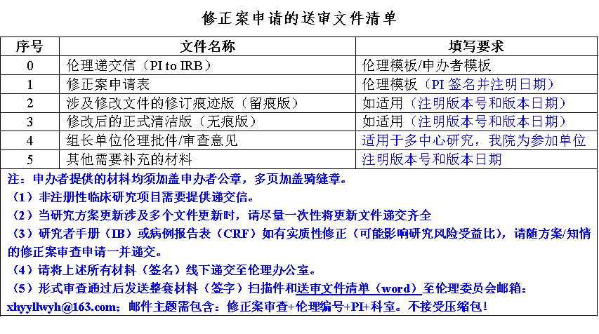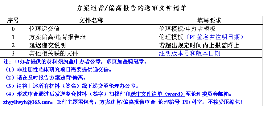 ④材料递交:所有文件核对无遗漏后,将以下材料递交至伦理委员会办公室: