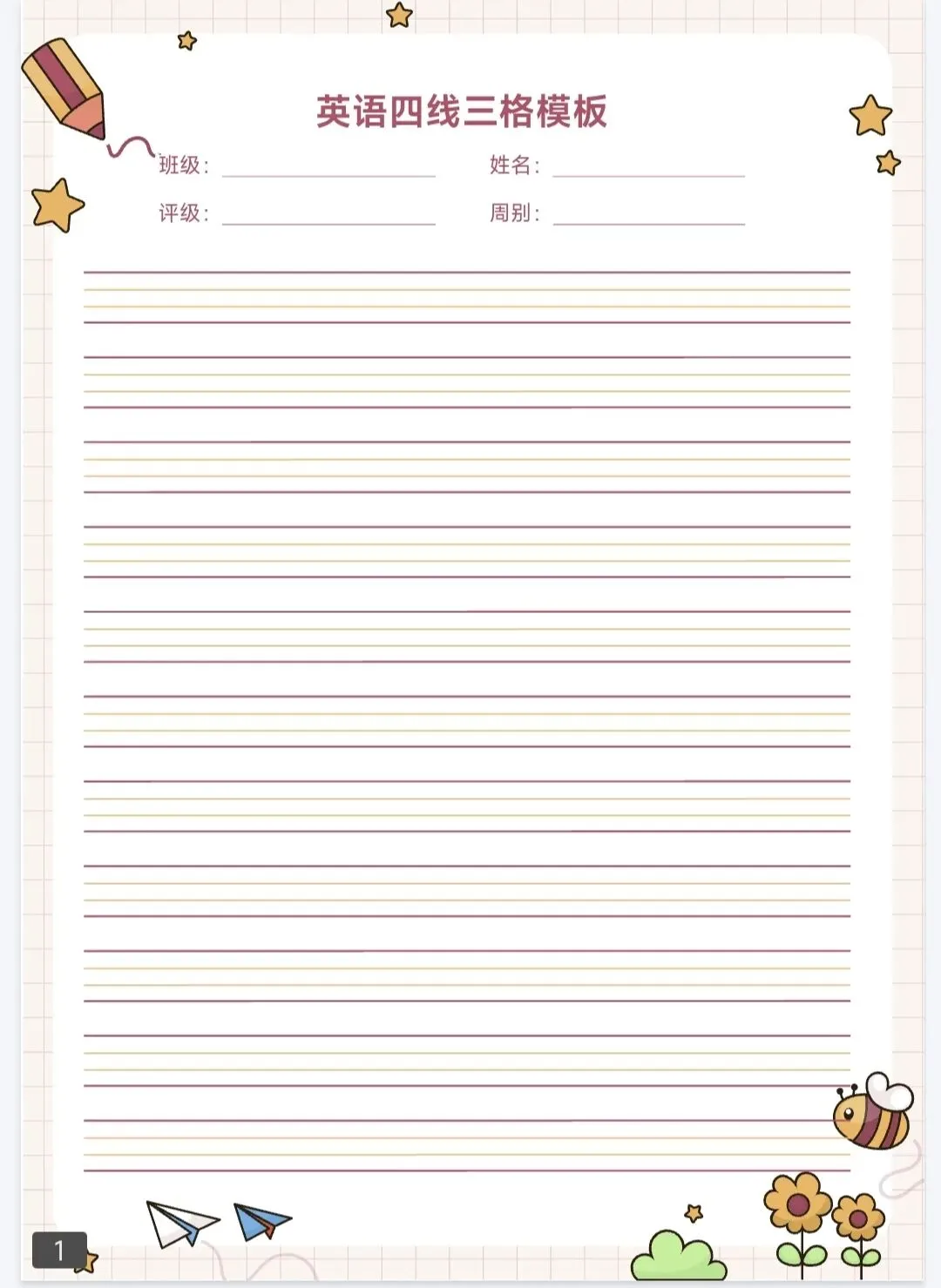 中小学生实用打印纸:阅读笔记,作文纸,听写本,信纸,手账本,记账本,错题集,英语书写表,数学作业纸,田字格,生字练习,拼音本,米字格,成语累计本,摘抄笔记……