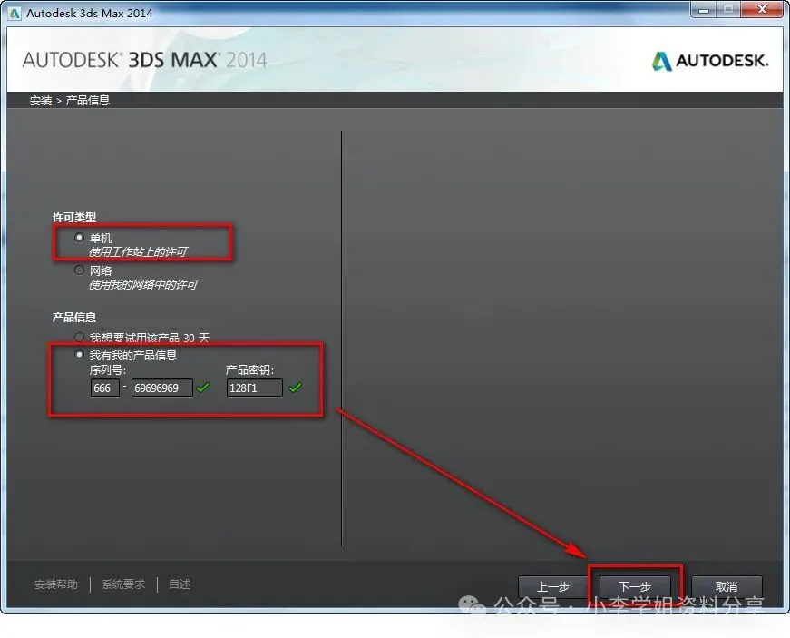 6.序列号输入:666-69696969,产品密钥:128F1,点击“下一步” ![]() 7.可以选择软件安装路径,点击“安装”