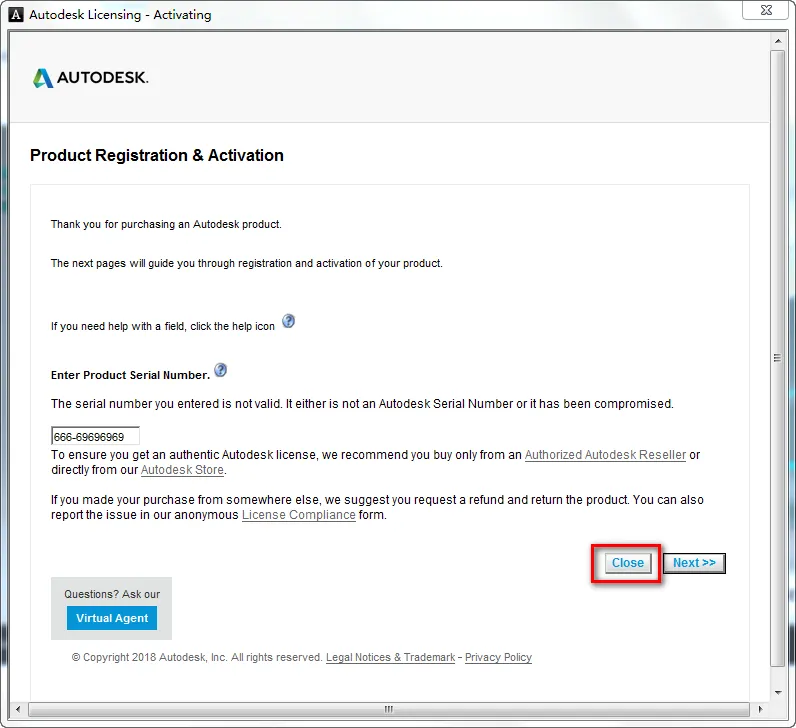 12.点击“Activate” ![]() 13.如果出现以下提示,点击“Close”,重复步骤12