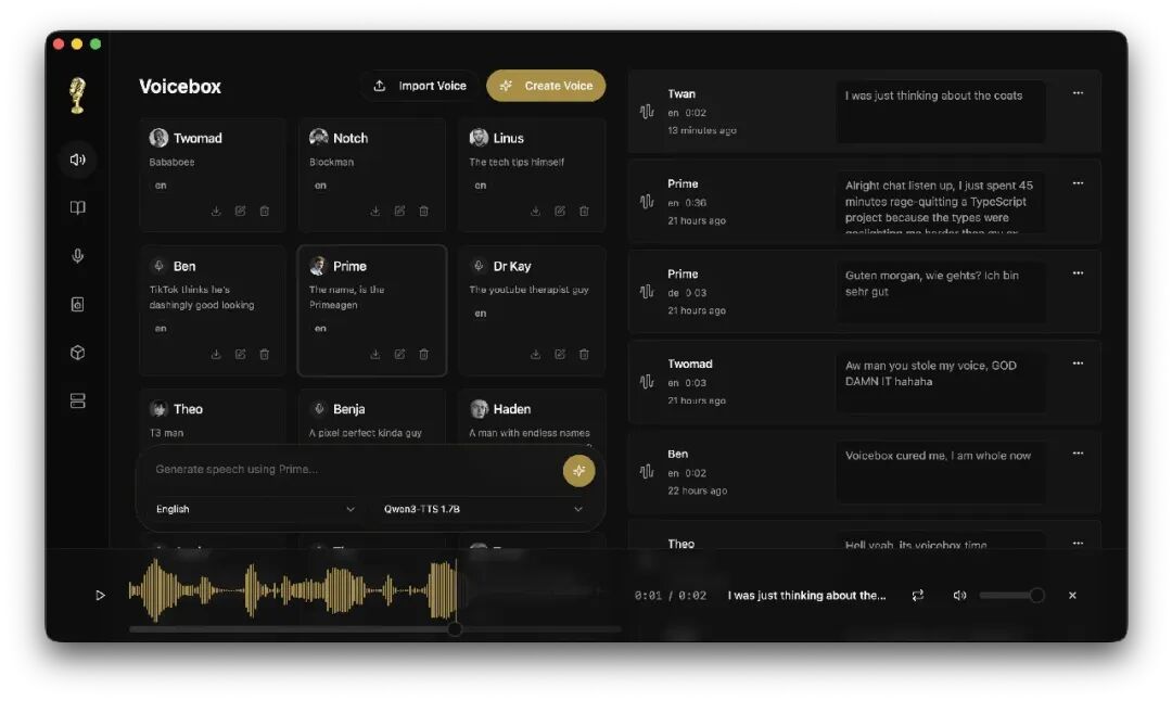 在这个节奏极快的时代,生产内容的效率就是你的护城河。 有了 Voicebox,你只需要录制自己几秒钟的清晰声音作为“种子”,它就能克隆出一个永远不会疲倦的“赛博王工”。不管是做有声书、短视频解说,还是开发需要语音交互的自制桌面机器人(别忘了它还提供了本地 REST API 接口),它都是一把瑞士军刀。