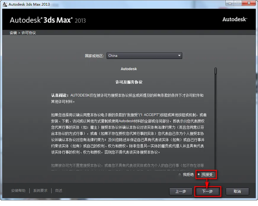 5.勾选我接受,点击“下一步”