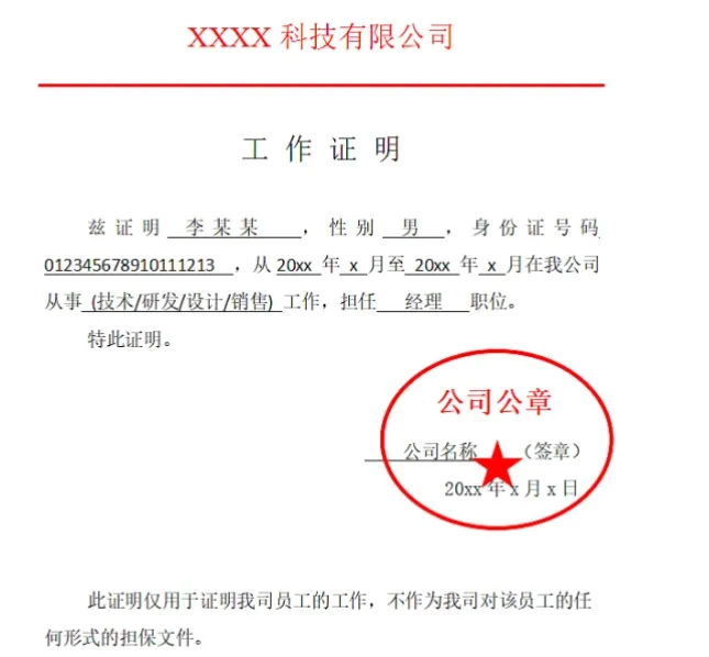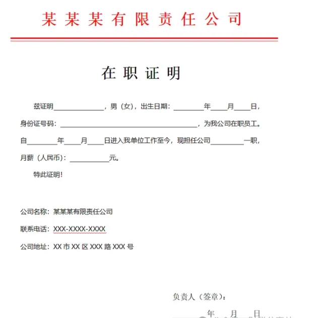 注:本证明仅用于我司员工工作,不作为我司对该员工其他任何形式的担保文件