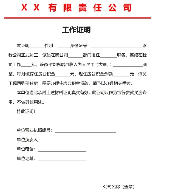 兹证明性别:身份证号 :系我公司正式员工,该员在我公司部门担任职务。连续在我司工作年,该员平均税后月收入为人民币(大写): 圆整,每月缴存住房公积金元,现住房公积金余额元,该员工现因购买住房,需要办理住房公积金贷款,请予以办理相关手续。