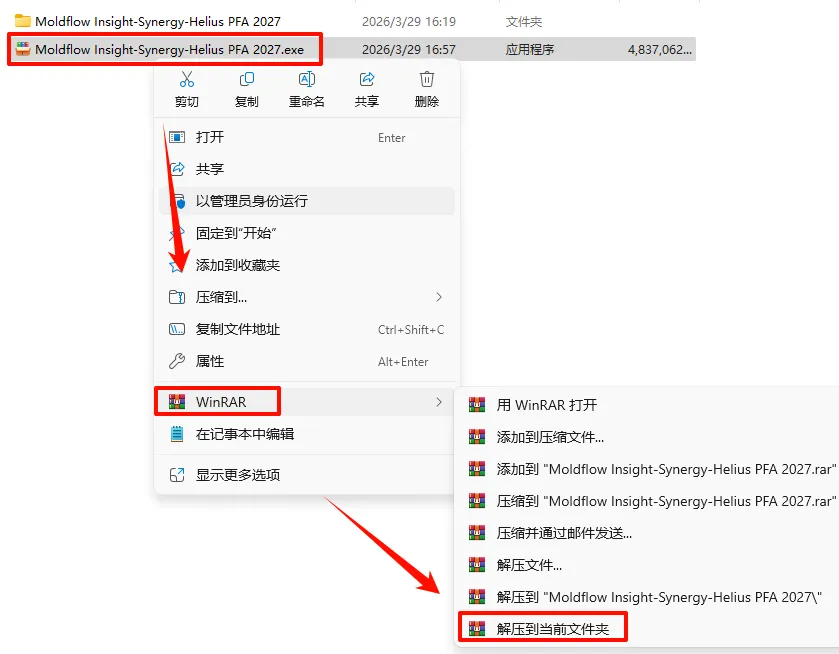 1.选中下载的压缩包,然后鼠标右键选择“解压到当前文件夹”(没有解压选项点这里)