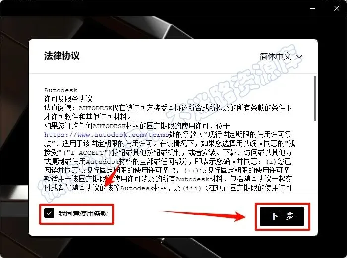 3.勾选“我同意...”,点击“下一步”