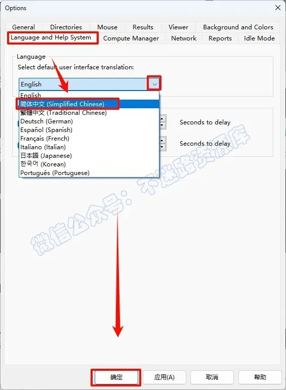 13.点击”Language...”,选择”简体中文...”,点击”确定”