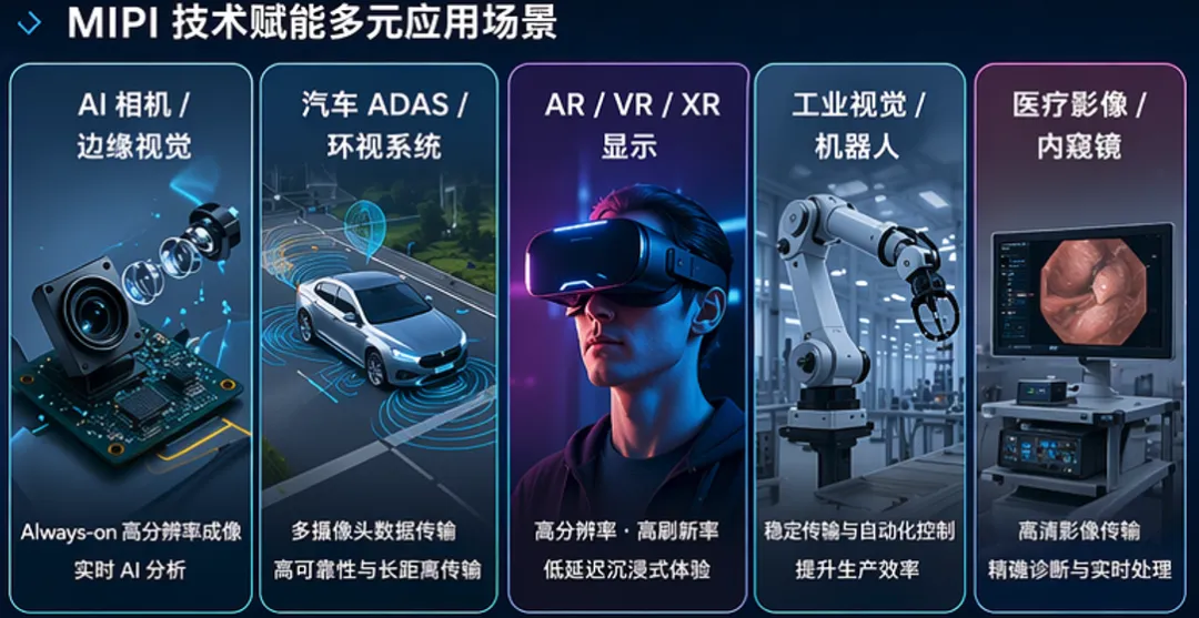 MIPI新时代:从AI影像到XR的测试挑战随着影像与显示技术迈向更高分辨率与更低延迟,MIPI接口在2026年迎来关键性的时代转变。从C-PHY导入光传输概念,到D-PHY采用Embedded Clock架构,再到CSI-2与DSI-2持续强化对AI与高刷新应用的支持,整体技术正朝向「更高速、更智能、更整合」的方向快速演进。这些变化不仅影响规格本身,更深刻改变了产品设计与验证的方式。以智能型手机为例,新一代AI Camera已逐渐转向Always-on架构,传感器需要持续输出高带宽影像数据,并实时交由ISP或NPU进行分析。在这样的应用场景中,CSI-2搭配C-PHY不仅提升数据传输效率,也降低了功耗与pin数,但同时也让讯号编码与同步机制变得更加复杂。工程团队在设计初期阶段,往往需要面对协议层与物理层交错的问题,传统测试方式已难以有效定位错误来源。在车用领域,MIPI接口正快速渗透至ADAS与环景影像系统。多颗相机同时运作,数据经由长距离传输进入中央运算平台,对于讯号完整性与稳定性提出更严苛的要求。尤其当系统导入高分辨率传感器与实时决策算法时,任何微小的噪声或封包错误,都可能放大为系统层级的风险。因此,如何在实验室阶段即完整模拟极端条件并进行压力测试,已成为车用设计不可或缺的一环。同样地,在AR / VR / XR显示应用中,DSI-2所承载的资料量持续攀升。高刷新率与高分辨率面板要求稳定且低延迟的传输链路,D-PHY Embedded Clock的导入虽然提升了效率,但也对时序与讯号质量提出新的挑战。显示模块与SoC之间的整合验证,变得比以往更加关键。- C-PHY v3.1:导入optical interconnect,支持更长距离与更高数据