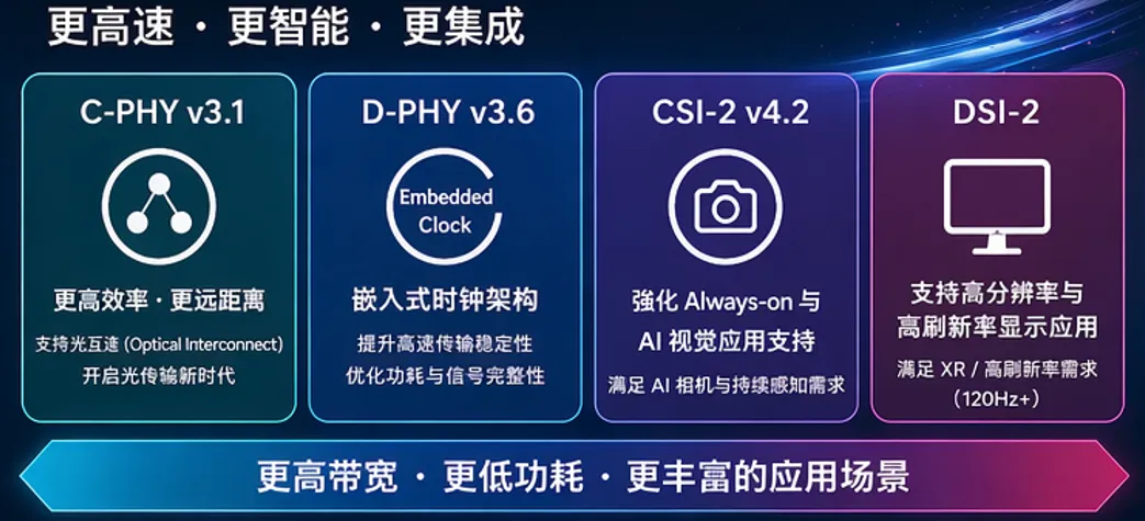- D-PHY v3.6:Embedded Clock架构,大幅优化高速传输稳定性