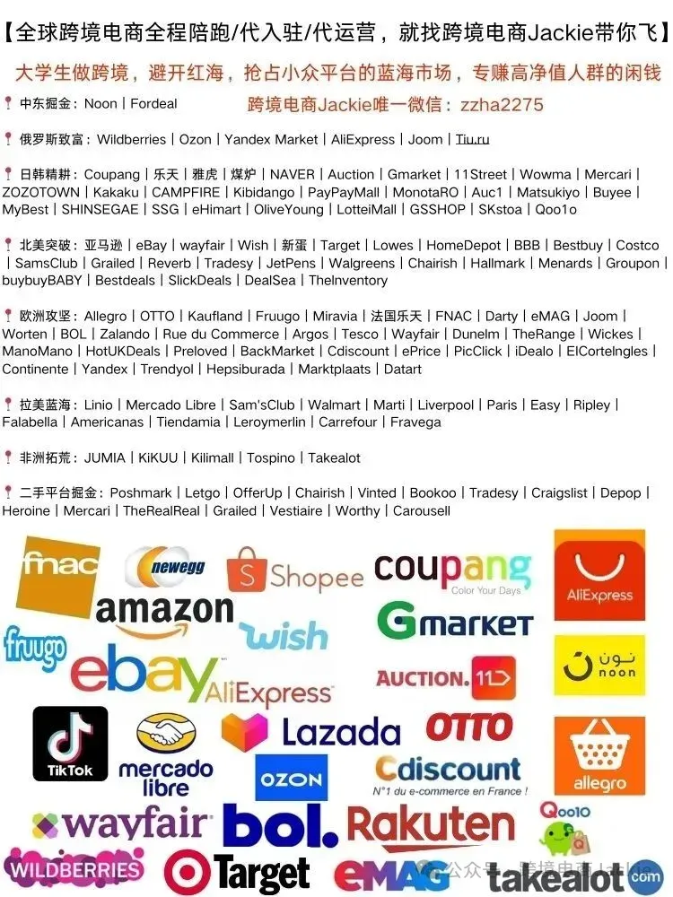 📍 中东掘金:Noon|Fordeal📍 日韩精耕:Coupang|乐天|雅虎|煤炉|NAVER|Auction|Gmarket|11Street|Wowma|Mercari|ZOZOTOWN|Kakaku|CAMPFIRE|Kibidango|PayPayMall|MonotaRO|Auc1|Matsukiyo|Buyee|MyBest|SHINSEGAE|SSG|eHimart|OliveYoung|LotteiMall|GSSHOP|SKstoa|Qoo1o📍 北美突破:亚马逊|eBay|wayfair|Wish|新蛋|Target|Lowes|HomeDepot|BBB|Bestbuy|Costco|SamsClub|Grailed|Reverb|Tradesy|JetPens|Walgreens|Chairish|Hallmark|Menards|Groupon|buybuyBABY|Bestdeals|SlickDeals|DealSea|Thelnventory📍 欧洲攻坚:Allegro|OTTO|Kaufland|Fruugo|Miravia|法国乐天|FNAC|Darty|eMAG|Joom|Worten|BOL|Zalando|Rue du Commerce|Argos|Tesco|Wayfair|Dunelm|TheRange|Wickes|ManoMano|HotUKDeals|Preloved|BackMarket|Cdiscount|ePrice|PicClick|iDealo|EICortelngles|Continente|Yandex|Trendyol|Hepsiburada|Marktplaats|Datart📍 拉美蓝海:Linio|Mercado Libre|Sam'sClub|Walmart|Marti|Liverpool|Paris|Easy|Ripley|Falabella|Americanas|Tiendamia|Leroymerlin|Carrefour|Fravega📍 非洲拓荒:JUMIA|KiKUU|Kilimall|Tospino|Takealot📍 二手平台掘金:Poshmark|Letgo|OfferUp|Chairish|Vinted|Bookoo|Tradesy|Craigslist|Depop|Heroine|Mercari|TheRealReal|Grailed|Vestiaire|Worthy|Carousell