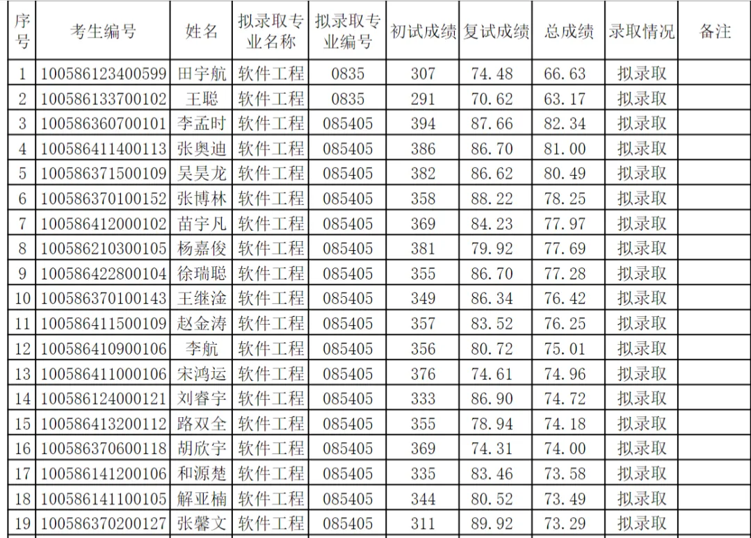 天津工业大学软件学院2026年硕士研究生拟录取名单公示