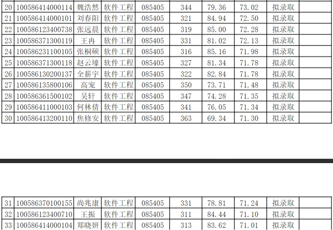 天津工业大学软件学院2026年硕士研究生拟录取名单公示