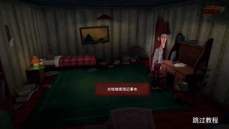 为扭转命运,他必须在有限时间内探索小镇、解开谜题,阻止悲剧从梦境走向现实,玩家通过点击屏幕控制角色移动,与场景中的物品互动,点击NPC进行对话收集线索,开启一场惊悚冒险。