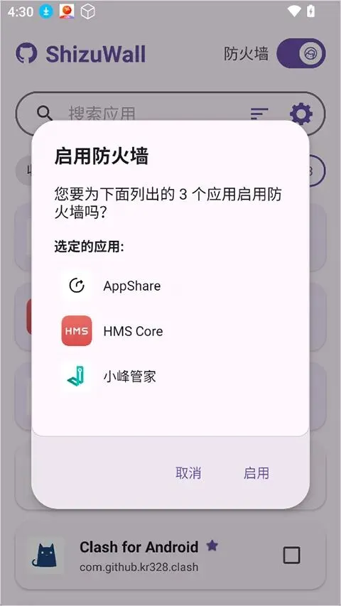 ShizuWall是一款专为安卓设备设计的轻量级隐私防护工具,以开源免费、无广告、无数据追踪为核心特色。ShizuWall依托Shizuku框架,通过系统级Shell命令实现应用网络权限的精细化管理,无需Root权限或占用VPN通道即可独立控制每个应用的Wi-Fi与移动数据访问。用户可按需设置允许/阻止联网,或启用“智能前台”模式仅允许前台应用联网,有效防止后台偷跑流量、广告追踪及恶意数据上传。