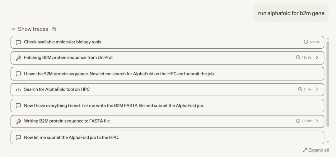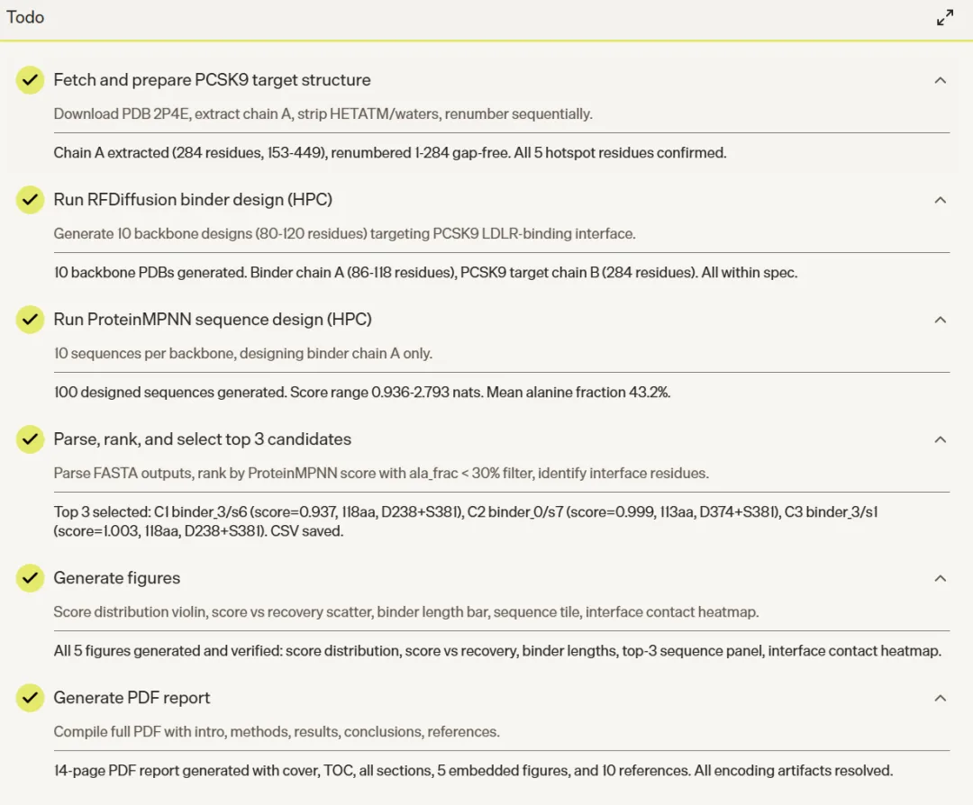 五个任务覆盖了结构预测、蛋白设计、分子克隆、AI 药物发现和转录组分析五个方向,共同呈现出几个一致的特点。