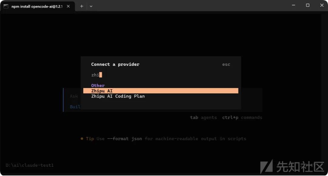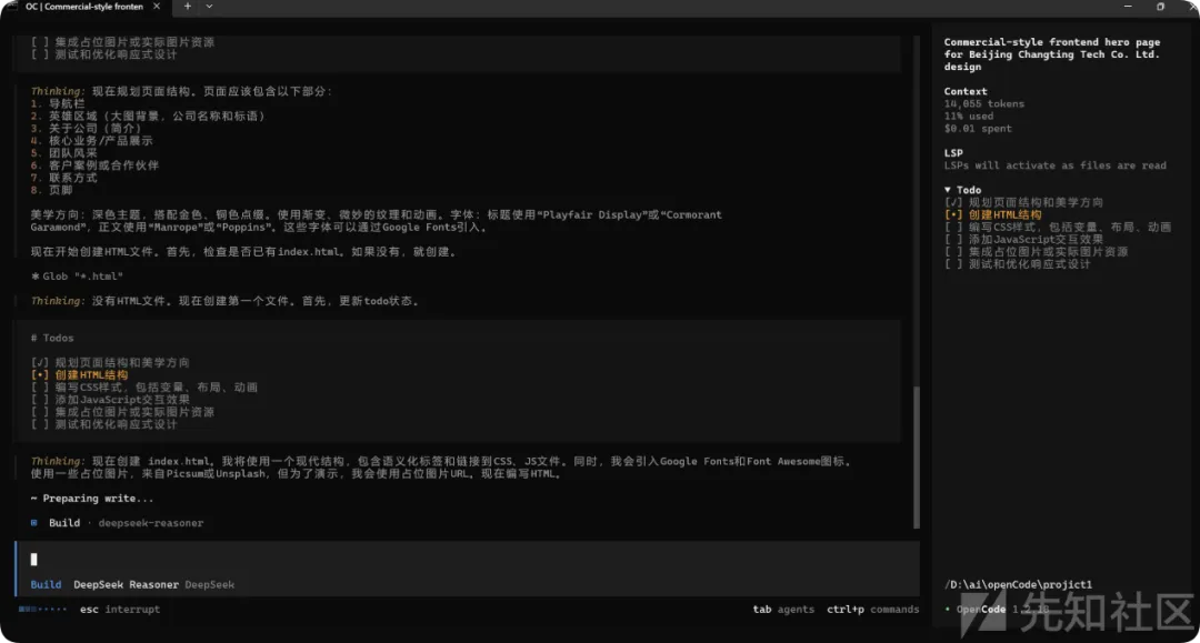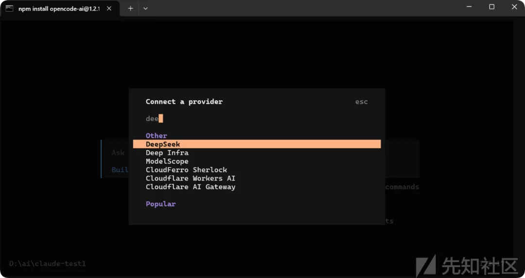 而opencode可选的模型就比较多了,例如质谱、deepseek、kimi等,直接填写api即可