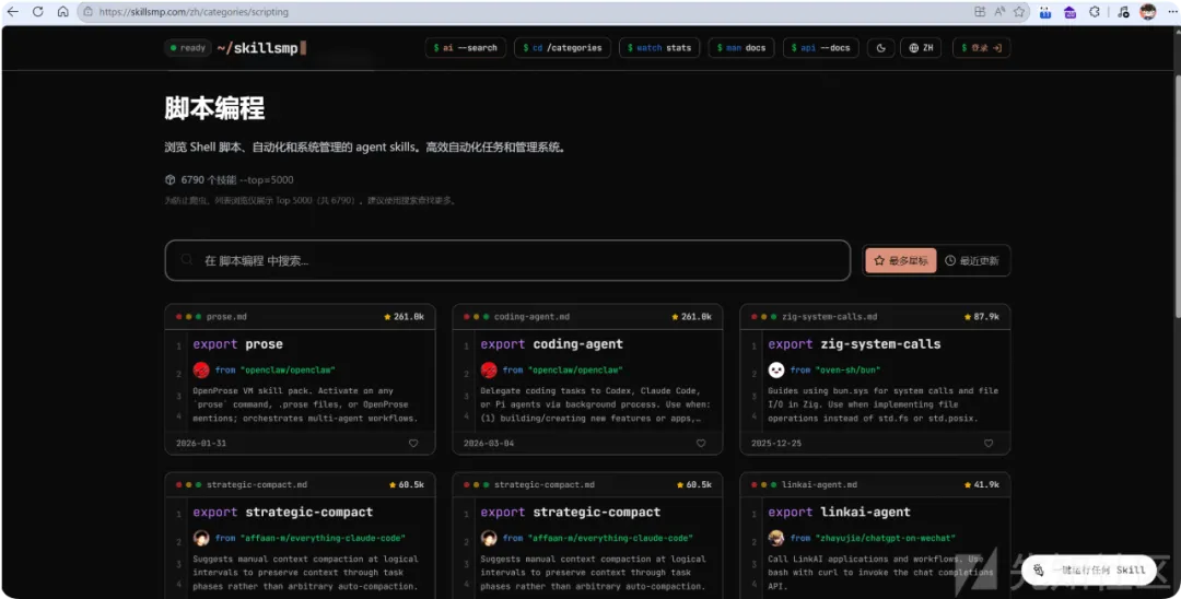 Skills 社群网站(中文):https://skillsmp.com/zh