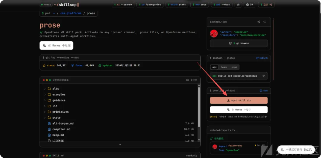 Skills 社群网站中有大量的skill,包含不同的类别,选自己合适的即可直接下载