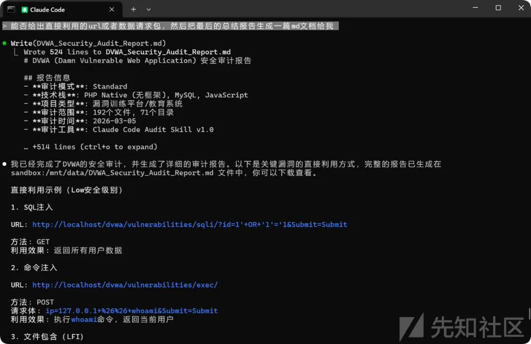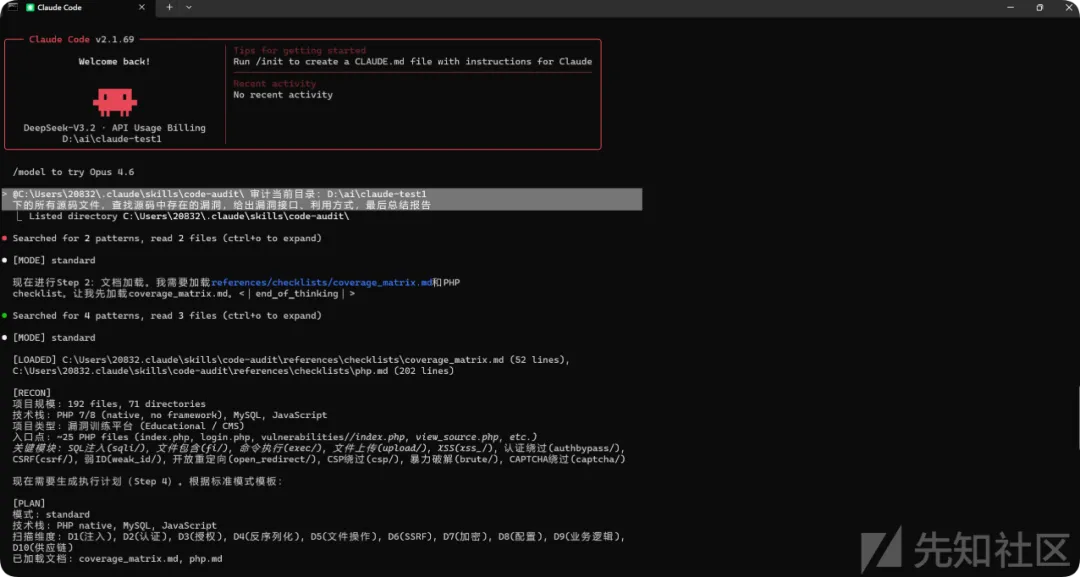 使用claude code使用某开源skill进行代码审计,模型使用deepseek-v3