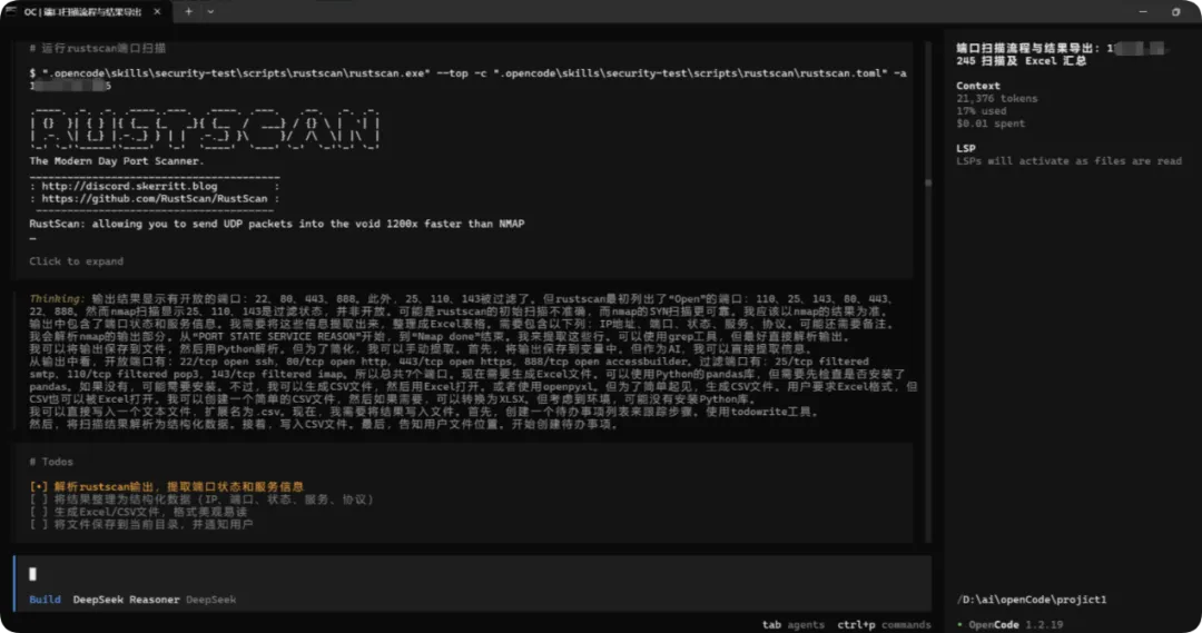 自动化ai渗透平台 当前写的skill非常单一 简单,后面可以尝试丰富skill.md文档内容,解析用户的复杂输入,包括接收文件输入,解析文件内容,再去链式调用多个渗透工具,将前一步渗透工具的结果进行合并传给链条上的下一个渗透工具进行下个功能处理,最终搜集所有结果,生成安全报告,从而实现渗透测试的自动化。