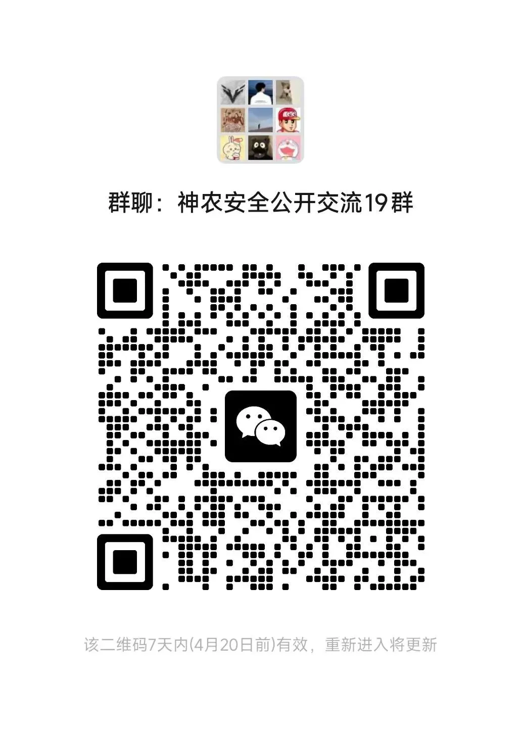 有需要的师傅们直接扫描文章二维码加入,然后要是后面群聊二维码扫描加入不了的师傅们,直接扫描文章开头的二维码加我(备注加群)