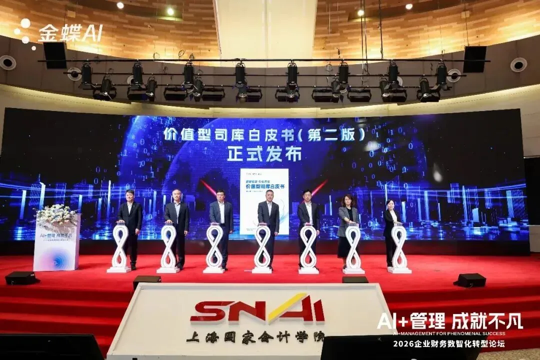 论坛现场,金蝶联合上海国家会计学院发布《价值型司库白皮书》(第二版),旨在为企业提供从“管控型”司库走向“价值型”司库的实践指南,助力企业构建世界一流司库管理体系。