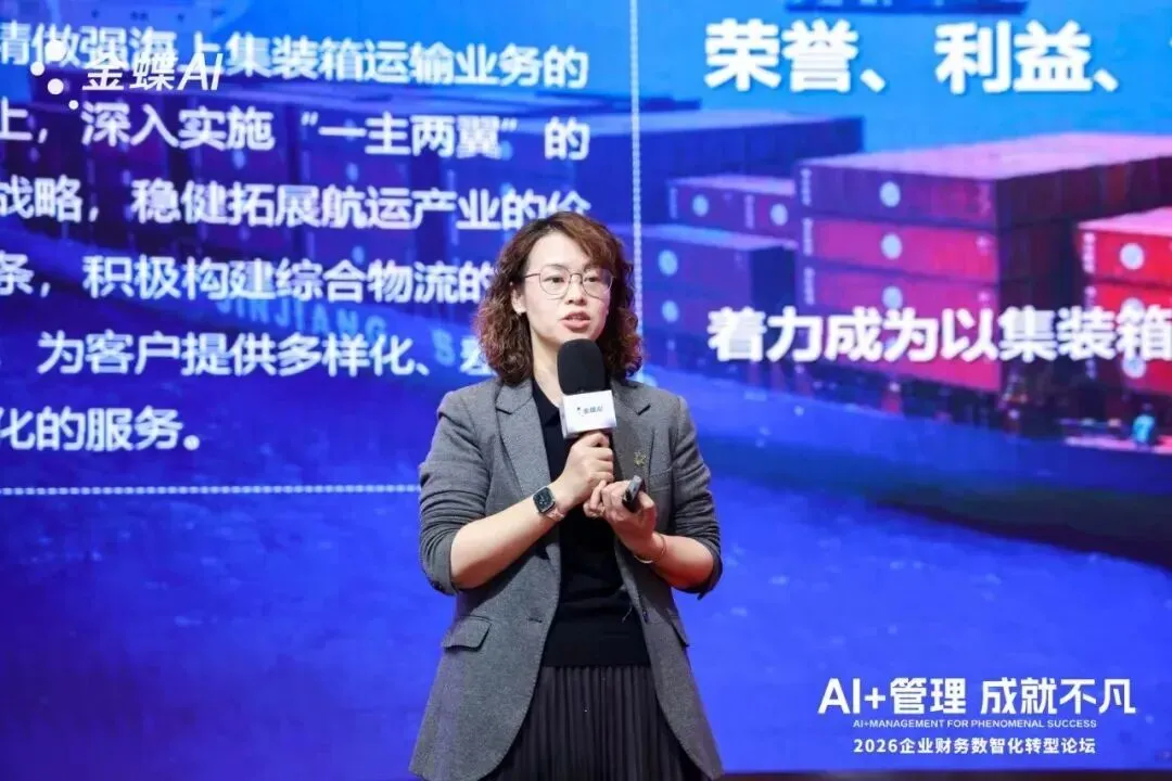 上海锦江航运(集团)股份有限公司财务共享中心主任杨恩沛分享了AI+财务共享的数智化实践。她指出,航运业业务链条长、数据分散、信息孤岛突出,传统财务管理面临效率瓶颈。锦江航运从业财深度融合切入,基于金蝶AI星瀚,统一管理基础、重塑业财流程、搭建数智化平台、分批培训推广,实现境内外全集团财务共享全覆盖。通过AI技术和财务机器人,凭证生成、报表编制、收付认领、发票审核实现自动化,核算效率提升超60%。财务职能从基础核算向价值创造升级,共享中心正向数据洞察中心转型。杨恩沛表示,未来将深化业财融合与生态协同,打造物流行业财务数智共享平台标杆。