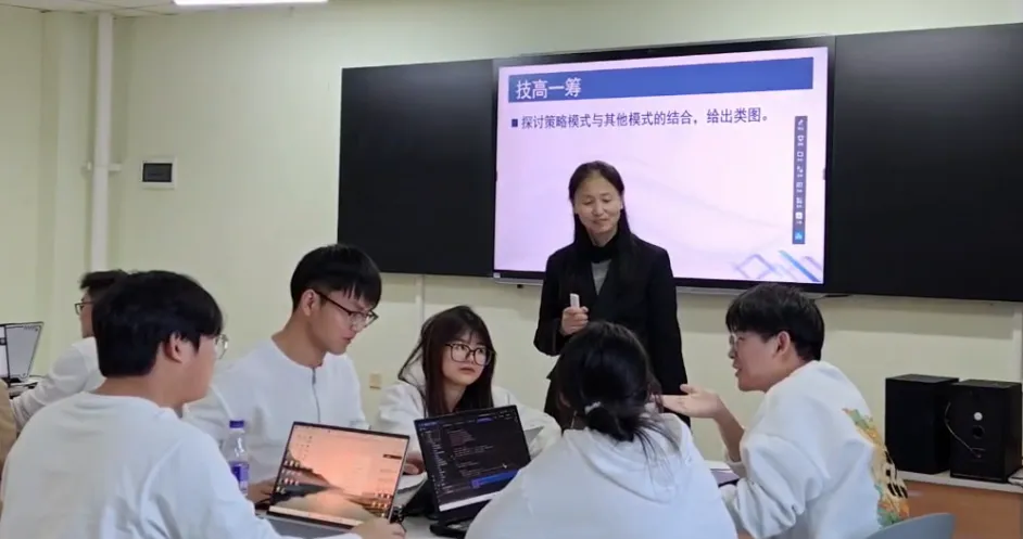 为让抽象的“模式”变得可触可感,教学团队引入了丰富多样的教学形式。情景教学法贯穿始终。在讲授观察者模式时,教师创设“关注公众号”情景,学生分组扮演公众号小编和关注者,用代码模拟订阅-通知机制;在讲授工厂模式时,课堂变身“软件工厂招标会”,各小组需设计一个“多数据库支持系统”,向“客户”(由其他组扮演)阐述自己的工厂方案。这种沉浸式体验,让学生在角色扮演中深刻理解模式的适用场景。