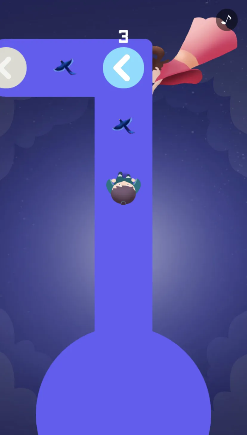 3、根据蓝色指引圈点击屏幕,改变牛郎的前进方向,让牛郎收集到更多喜鹊!