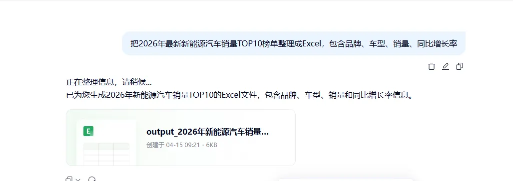 千问表格Agent来了!一句话生成Excel,同事还以为我加班到半夜说实话,刚开始看到新闻的时候,我有点不以为然。又是什么"AI办公革命"、"效率翻倍"之类的宣传词,听得太多了。"把2026年最新新能源汽车销量TOP10榜单整理成Excel,包含品牌、车型、销量、同比增长率。"不到1分钟,我拿到了一个可以直接下载的.xlsx文件。这个体验确实有点超出预期。不是因为技术有多牛——毕竟现在AI什么都能干——而是因为:它真的给你一个可以直接用的Excel,不是一段文字描述,也不是一个格式乱七八糟的表格。千问表格Agent是什么?
