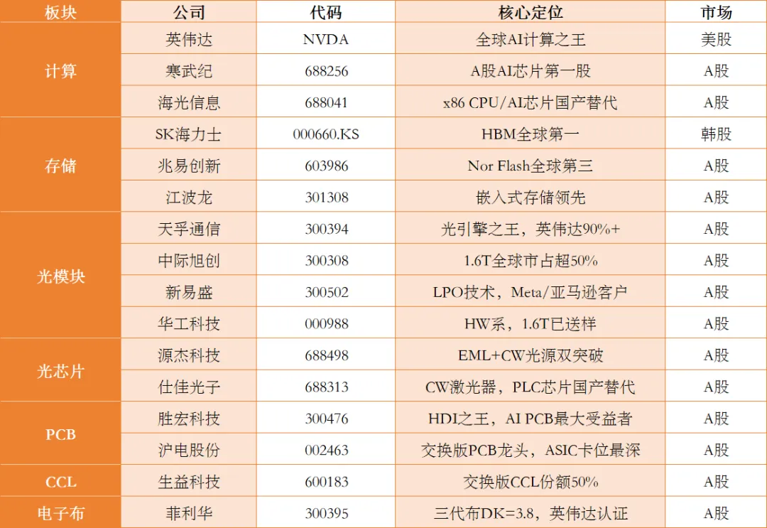 (提示:关于AI硬件全产业链的完整梳理,可以查看题材星球-数据库里面最新上传的文件资料。)