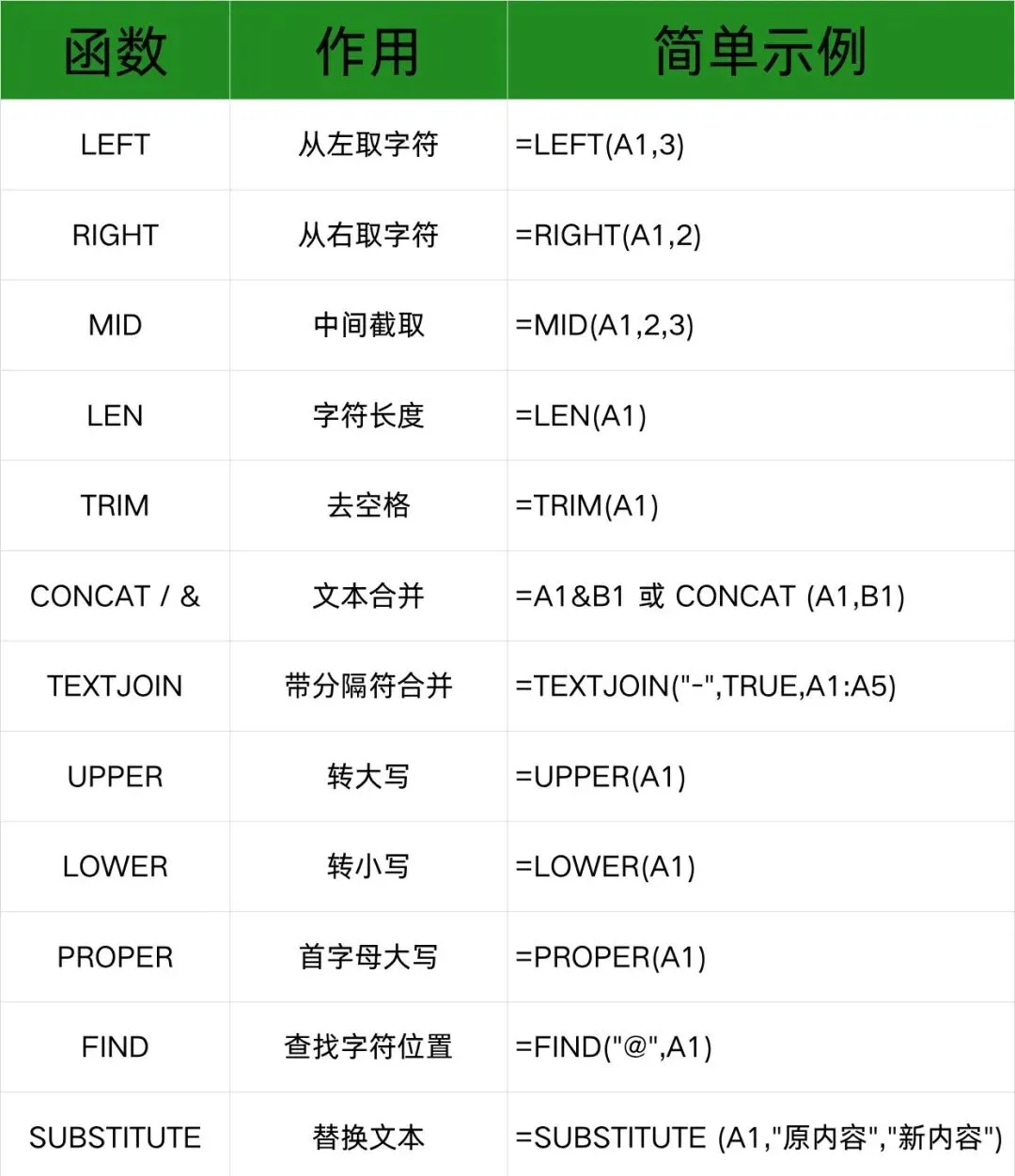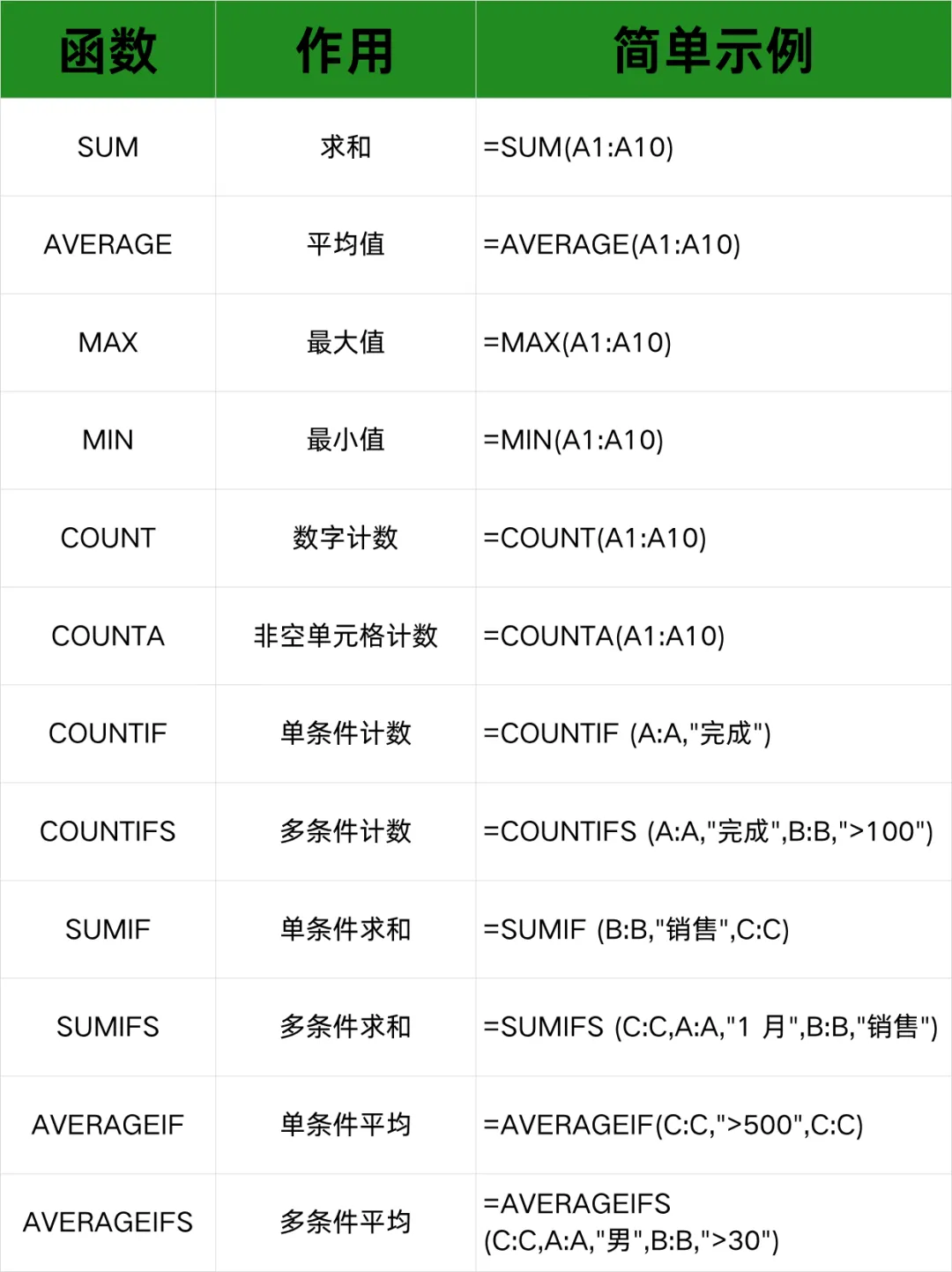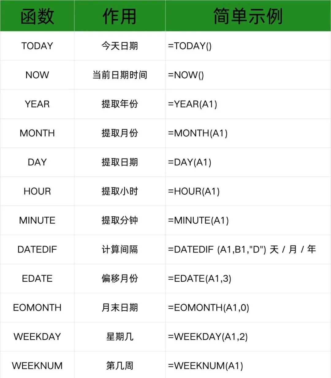 这也太清晰了,再也找不到这么全的Excel函数表了(财务记下这些效率翻倍)工具大家都会用,但有的人在面对老板临时提出需要一个报表却一个下午都整理不出来这是为什么呢。其实跟那些财务办公大神只差一步,就是熟练Excel函数,熟悉这些咱们也能按时下班了。下面整理一下办公常用到的Excel函数分享给大家。一、统计计算类二、查找引用类三、文本处理类四、逻辑判断类五、日期时间类六、数学计算类七、财务常用类八、高级实用类上面就是我们工作的时候常用到的Excel函数了,记不住很正常的,大家可以先保存,多用几遍就能记住了。最后祝大家工作蒸蒸日上