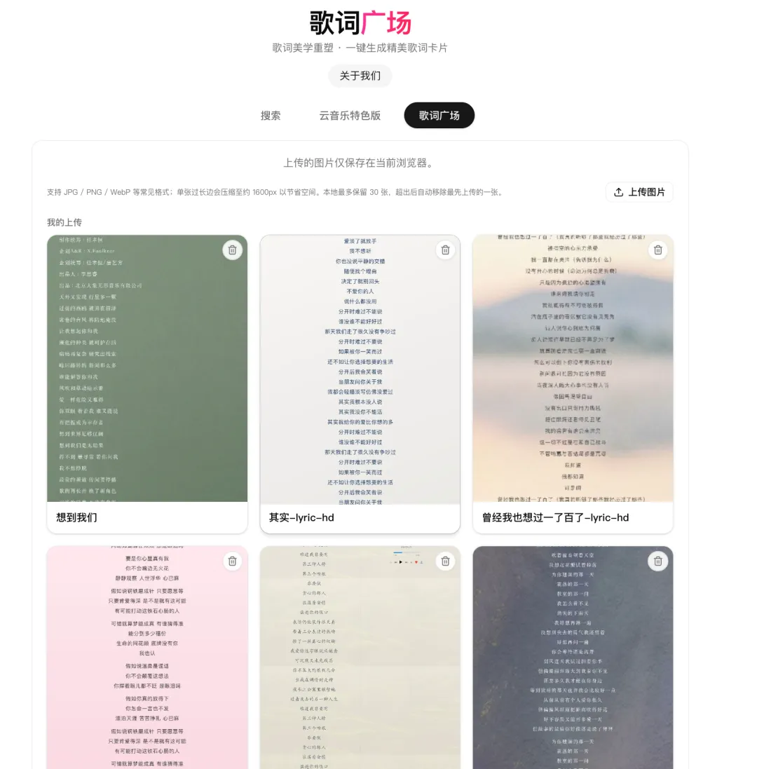 比如我之前做的“歌词广场”( https://song.daliuai.top )。