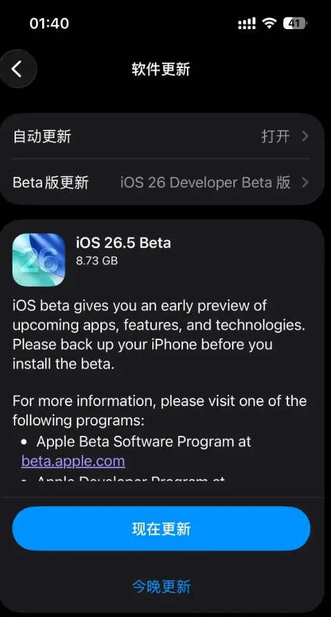 今天凌晨,苹果面向开发者推送iOS 26.5第二个测试版,更新包差不多7.2GB,内部版本号23F5054h,官方日志还是那句包含错误修复和改进,表面风平,细看有东西。