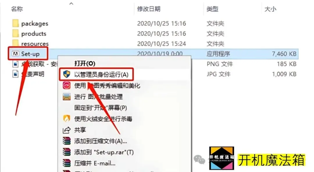 3.在打开的文件夹中,鼠标右击【Set-up】安装程序,选择【以管理员身份运行】。