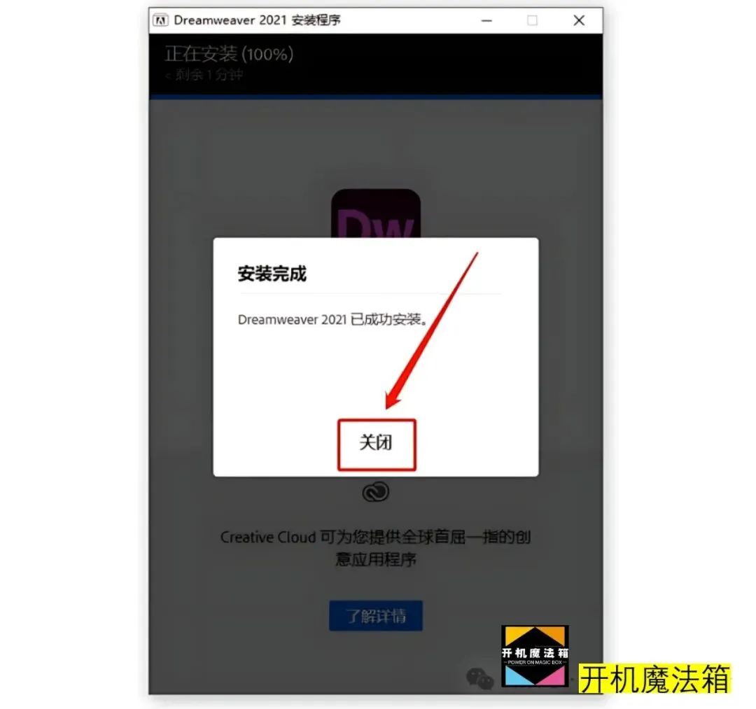 5.安装进度走完后点击【关闭】。