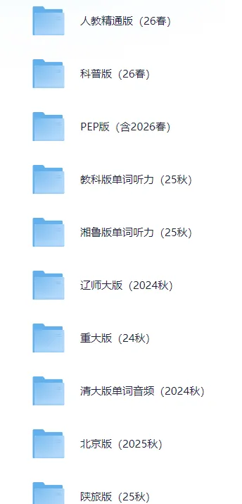 【资料下载】小学英语全版本上下册单词音频汇总(含2026春)资源介绍今天给大家整理小学英语上下册单词音频!如需电子打印版请拉至文末获取领取方式。资源展示因版面有限,仅展示部分资源如何领取电子版方式一识别下方二维码进入保存(长按二维码进入)注:方法一及方法三链接极易失效,若失效,请用方法二输入关键词领取。方式二点击下方公众号名片--发消息--输入关键词“音频” (新关注用户需先关注本公众号)请回复正确的关键词哦,要不错字、不添字、不漏字,否则系统无法识别方式三点击文末“阅读原文”领取资料戳这里,阅读原文