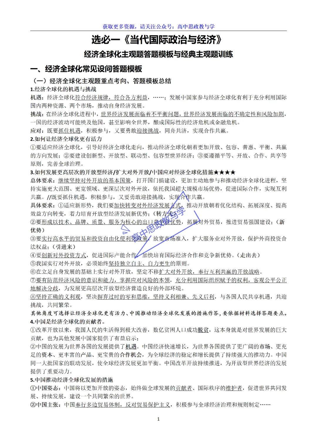 选必一《当代国际政治与经济》核心知识、答题术语、2026经典主观题解析可视化