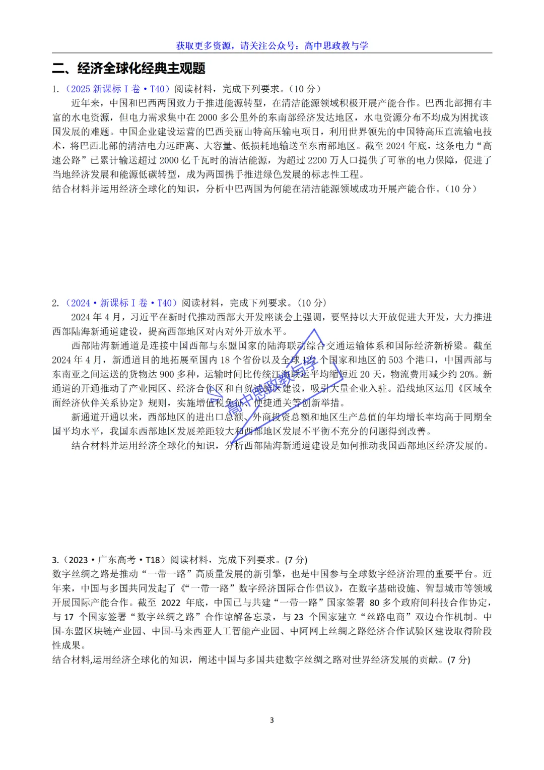 专题三 全球视野下的经济高质量发展(2026高考政治二轮复习)