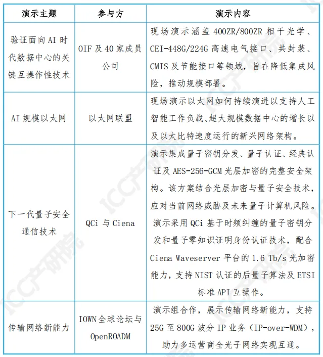 OFC 2026 现场演示的核心焦点明确指向 AI 时代数据中心的光通信基础设施升级,展现出产业从传统连接方案向 AI 原生架构全面转型的态势。