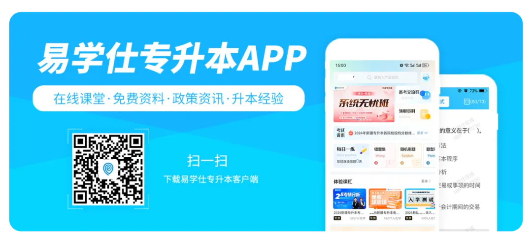 扫下方图片二维码下载易学仕专升本APP即可开始刷题。