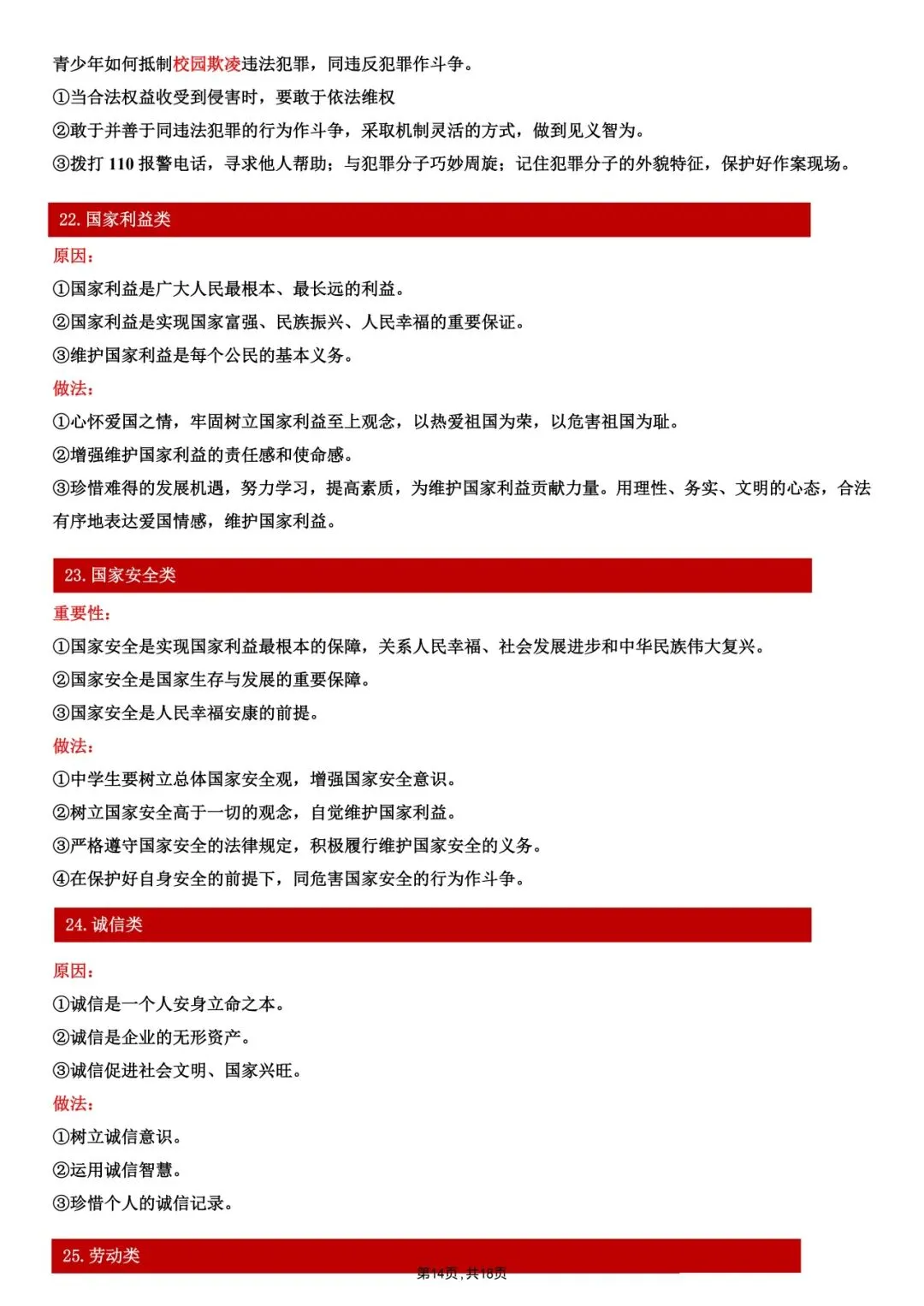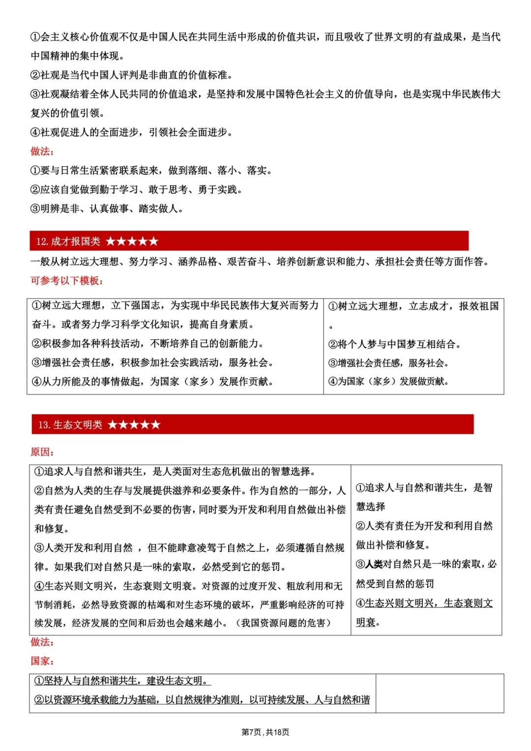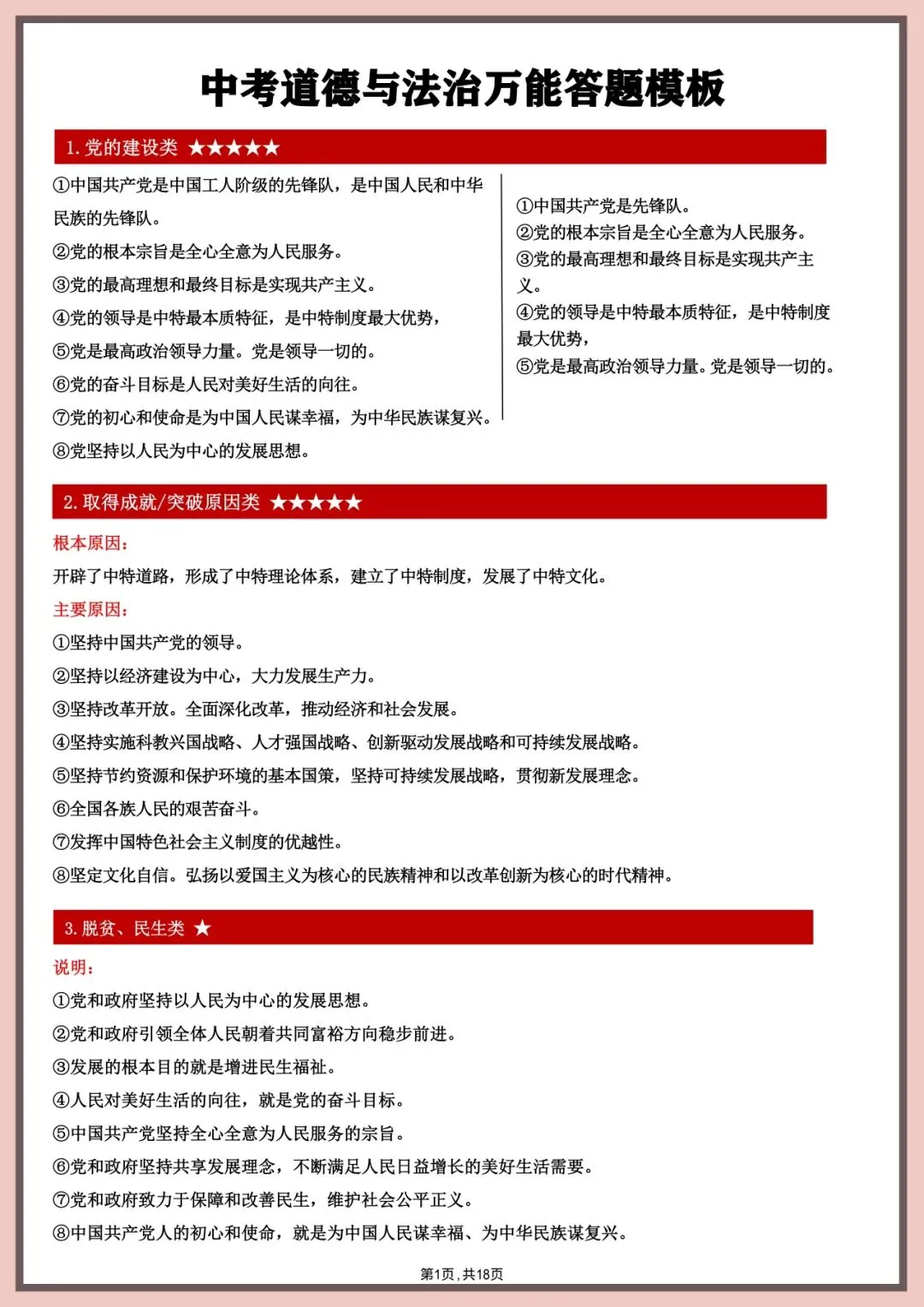 道法主观题不会答?这套模板封神了中考道法主观题万能答题模板来啦!覆盖34个必考专题,党、民生、法治、文化、生态、民族、国家安全、青少年做法全包含🔥